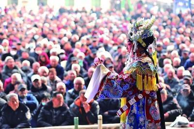 连日来,河南省焦作市温县组织戏曲院团、乡土剧团将优秀剧目送到乡村,让乡亲乐享戏曲“大餐”,丰富群众文化生活。图为2月18日,演员在温县武德镇村文化中心表演豫剧《下陈州》。新华社发(新华社)